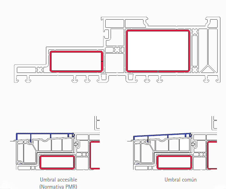 El sistema elevable es pura ingeniería funcional. Subes la manilla y la hoja se eleva unos milímetros, liberando el sistema de estanqueidad. Desde ahí, se desliza con suavidad. Cero traqueteo. Cero holguras. Ideal para quienes quieren acceso directo a terrazas, patios o jardines sin renunciar al confort térmico y acústico.